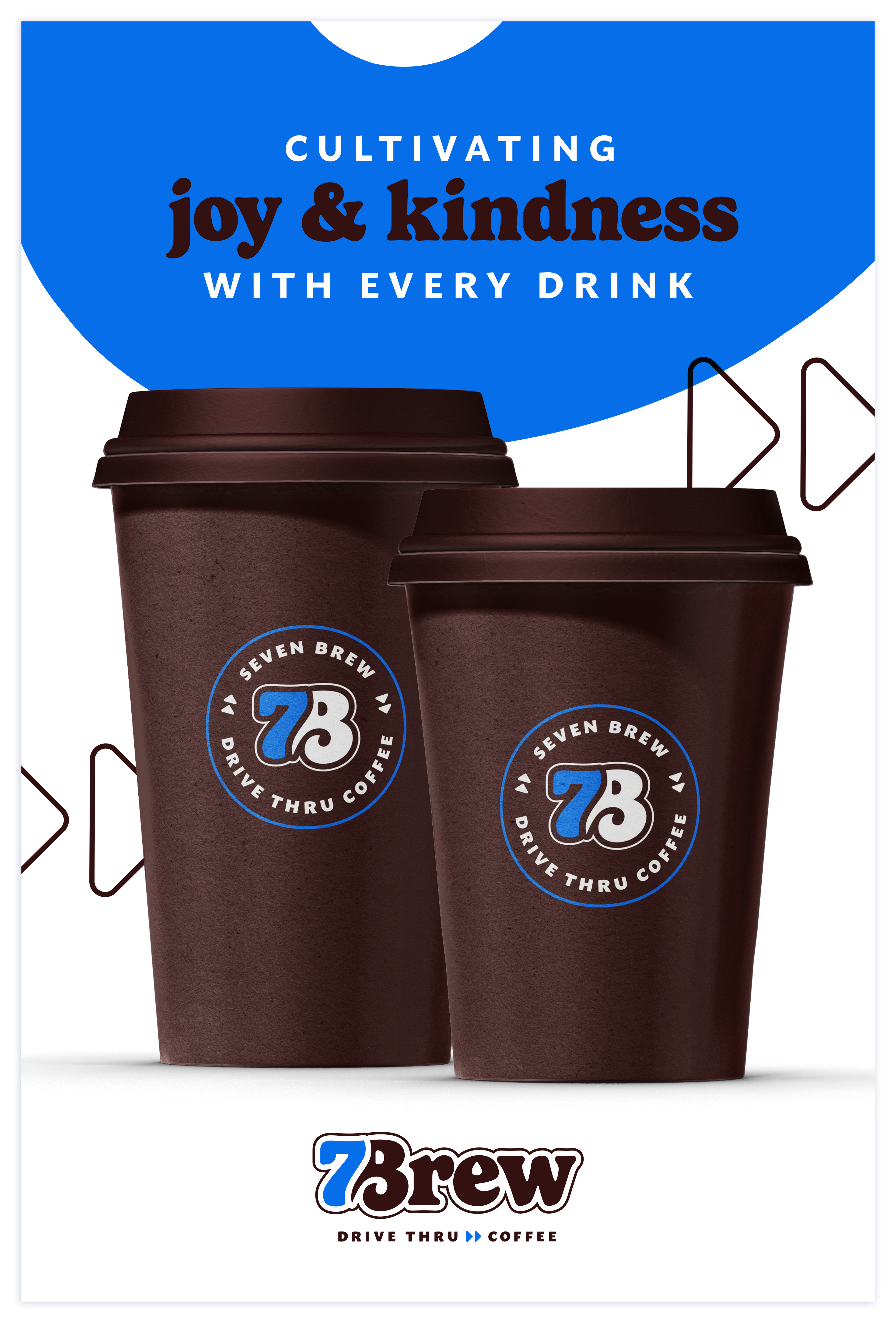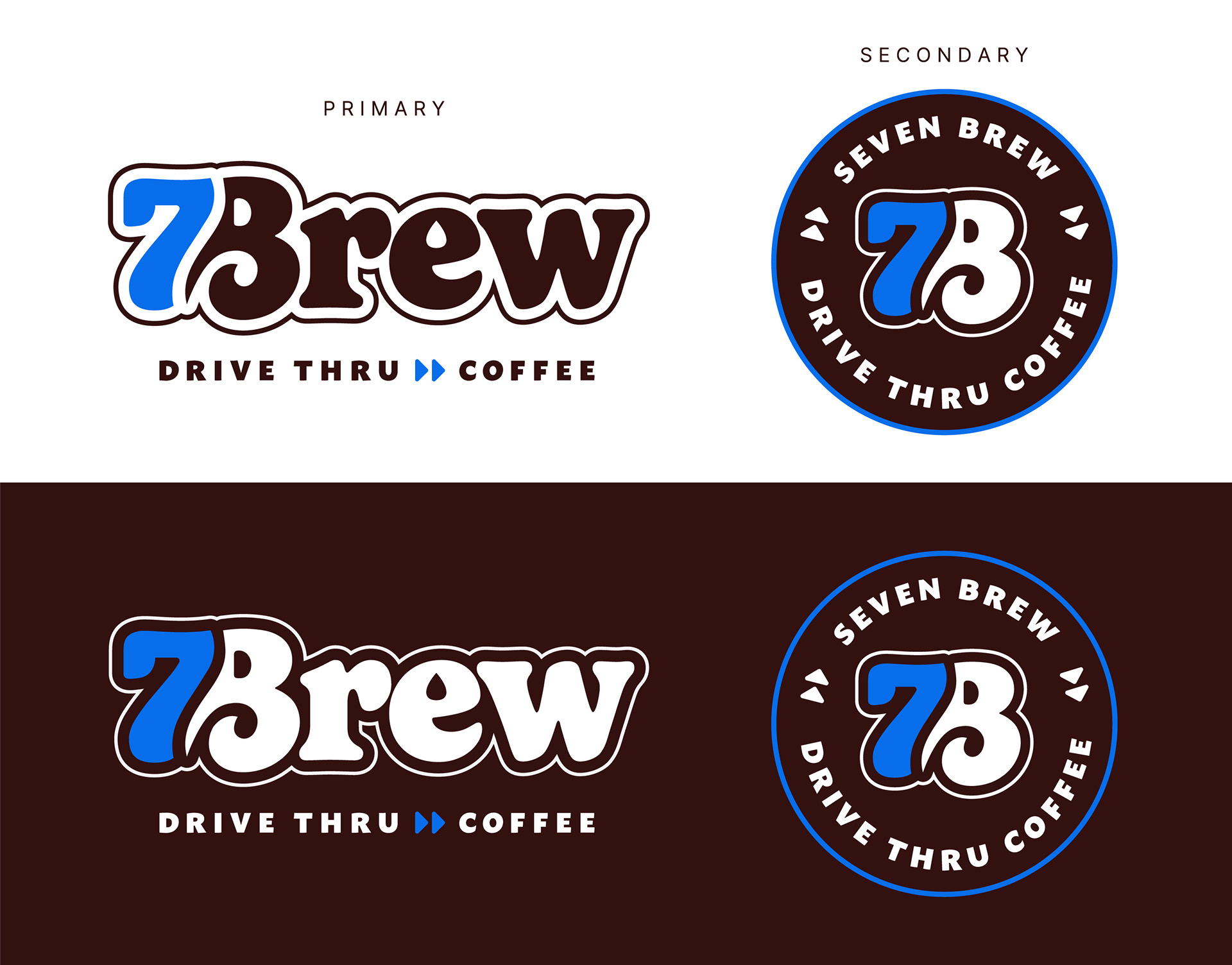I replaced the original maroon with a vivid blue—a bold shift that better reflects the brand’s approachable, upbeat tone. This choice also ties into 7 Brew’s physical spaces, echoing the blue roofs and neon signage found at every location.