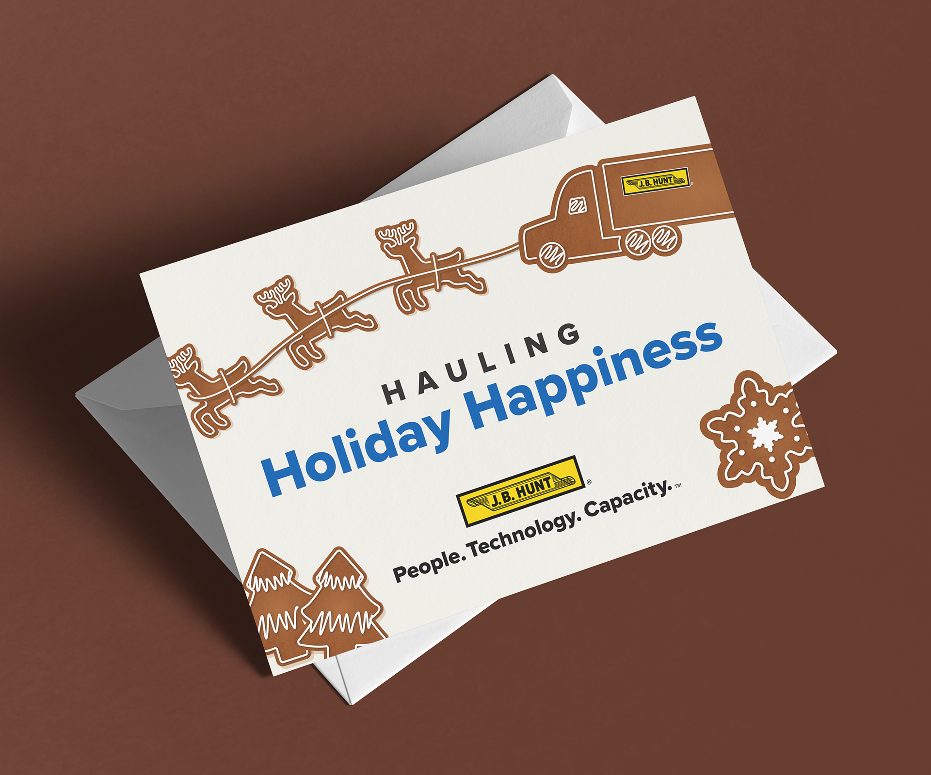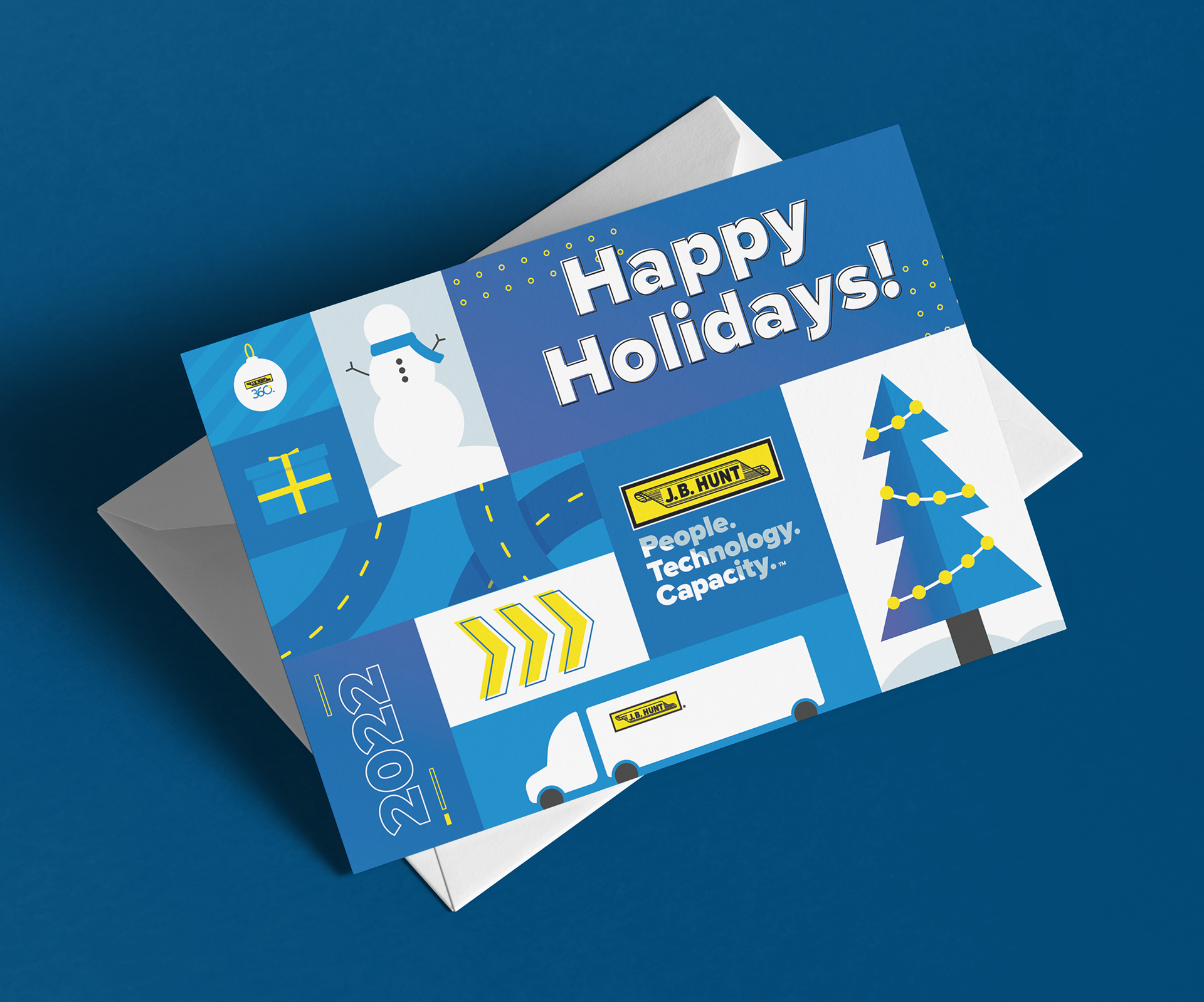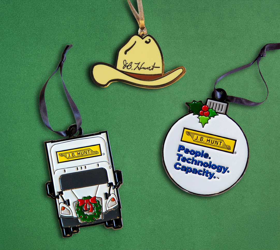 In 2023, I spearheaded a project to create J.B. Hunt-themed ornaments. Since then, we've launched three ornaments, each one representing a core element of the company: our classic truck design, our foundations—People. Technology. Capacity.—and the cowboy hat made famous by one of the company’s founders, Johnnie Bryan Hunt. I conceptualized, illustrated, and translated all designs into the proper format for die-struck print production.