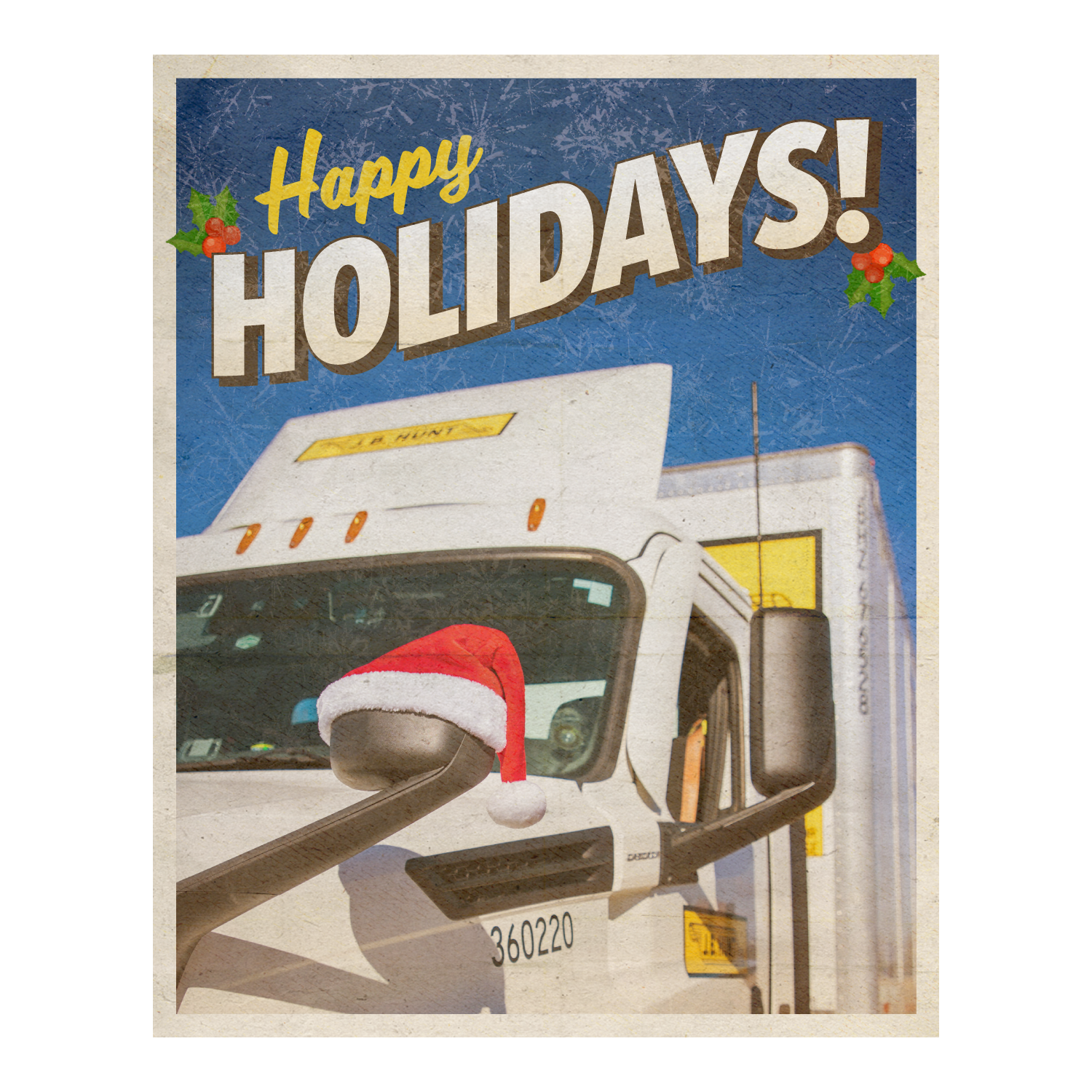 The final card was a special piece designed specifically for our truck driver audience. I captured this photo during a holiday-themed shoot and transformed it into a vintage-style postcard, making it both personal and memorable for our drivers—who are true heroes during the holiday season.